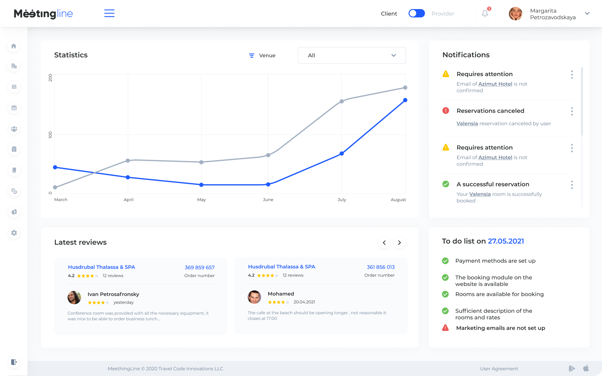 Information about bookings, transactions and attendance by visualizing key indicators: monitoring sales dynamics, revenue planning and forming optimal prices