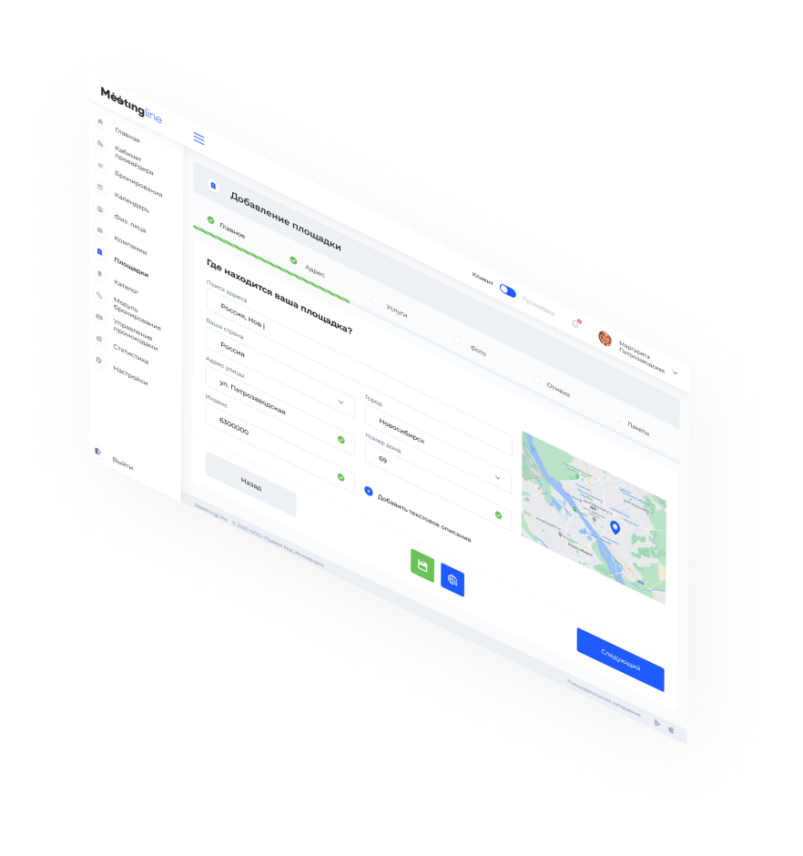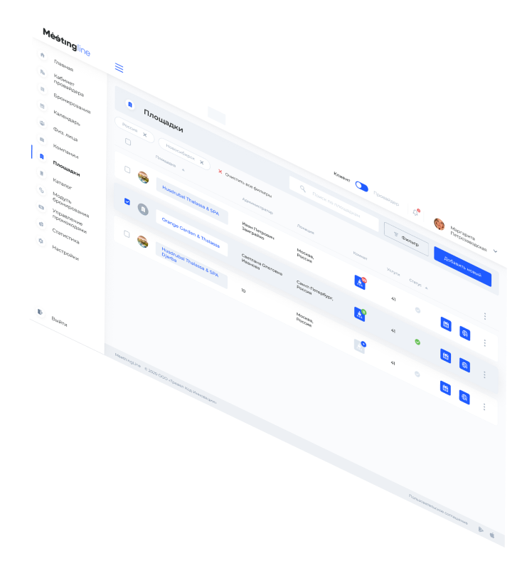 Добавление новых площадок и обновление текущих, предложений по аренде, облачный документооборот и управление дополнительными услугами